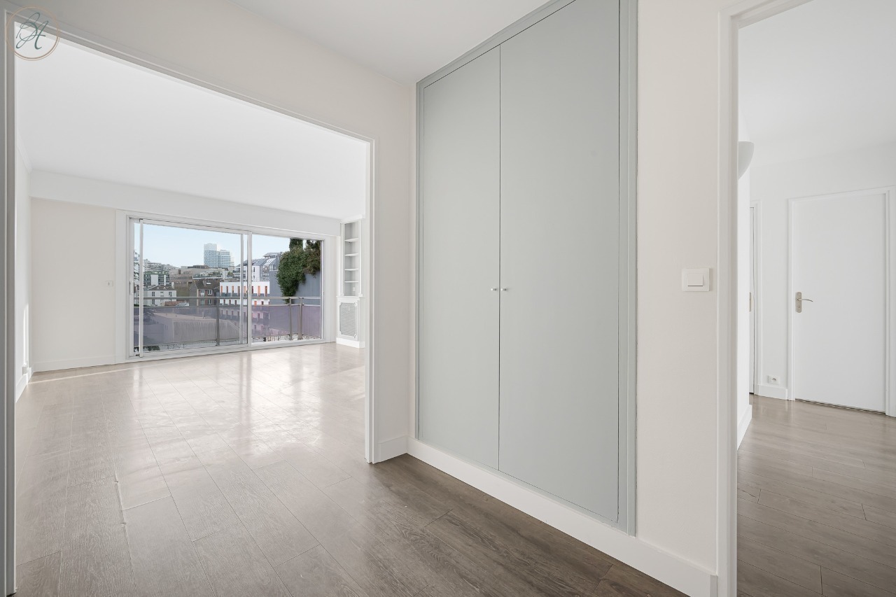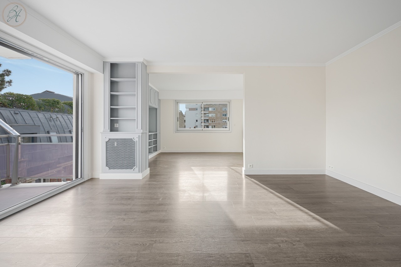 D’une surface de 93 m² loi Carrez, ce bien séduit par sa luminosité exceptionnelle, ses vues dégagées et son environnement privilégié, avec une agréable vue sur un parc arboré à l’arrière.