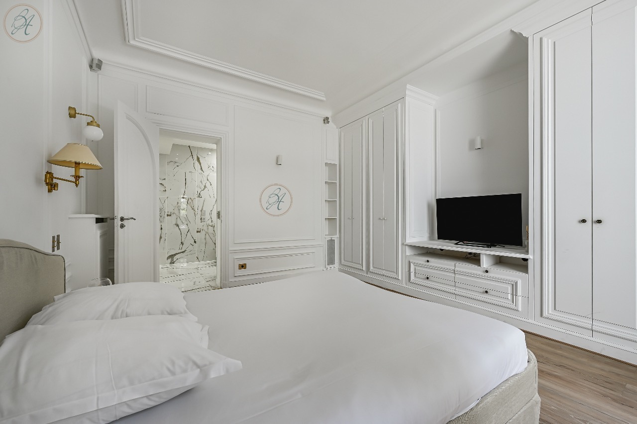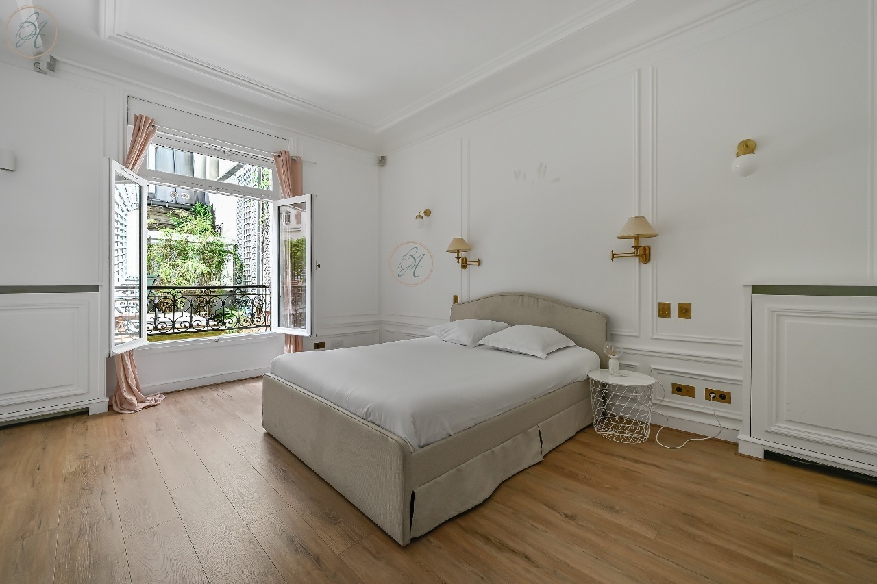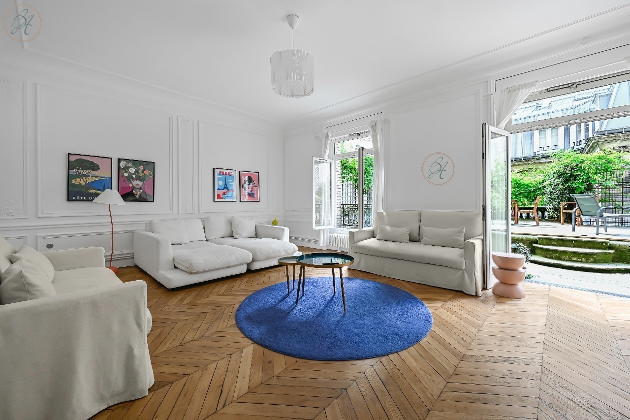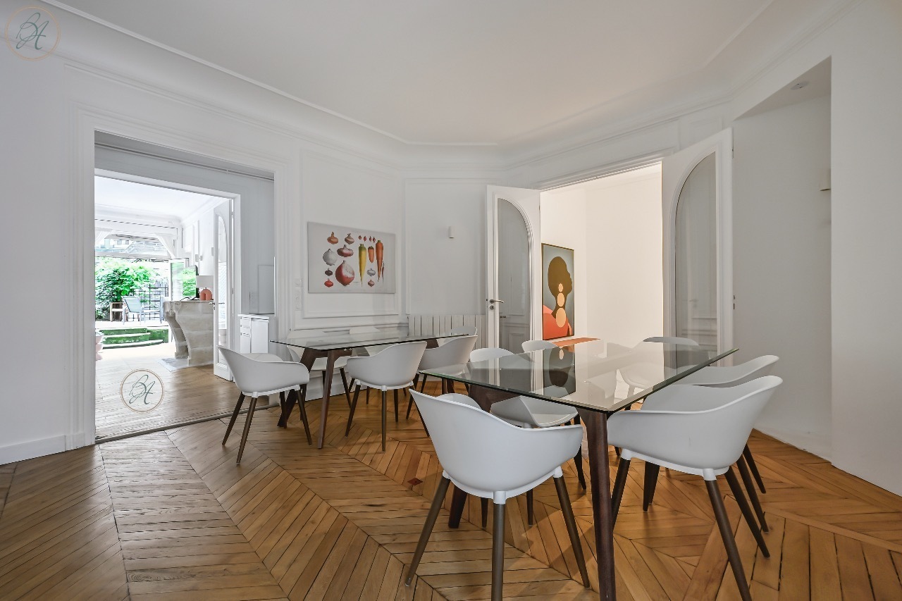 Près du Trocadéro et au calme, très bel appartement entièrement rénové avec de belles prestations de 182m2 avec 4 chambres, une terrasse de 84m2 arboré d'une glycine et ensoleillée, un double box accessible par l'immeuble et une cave.