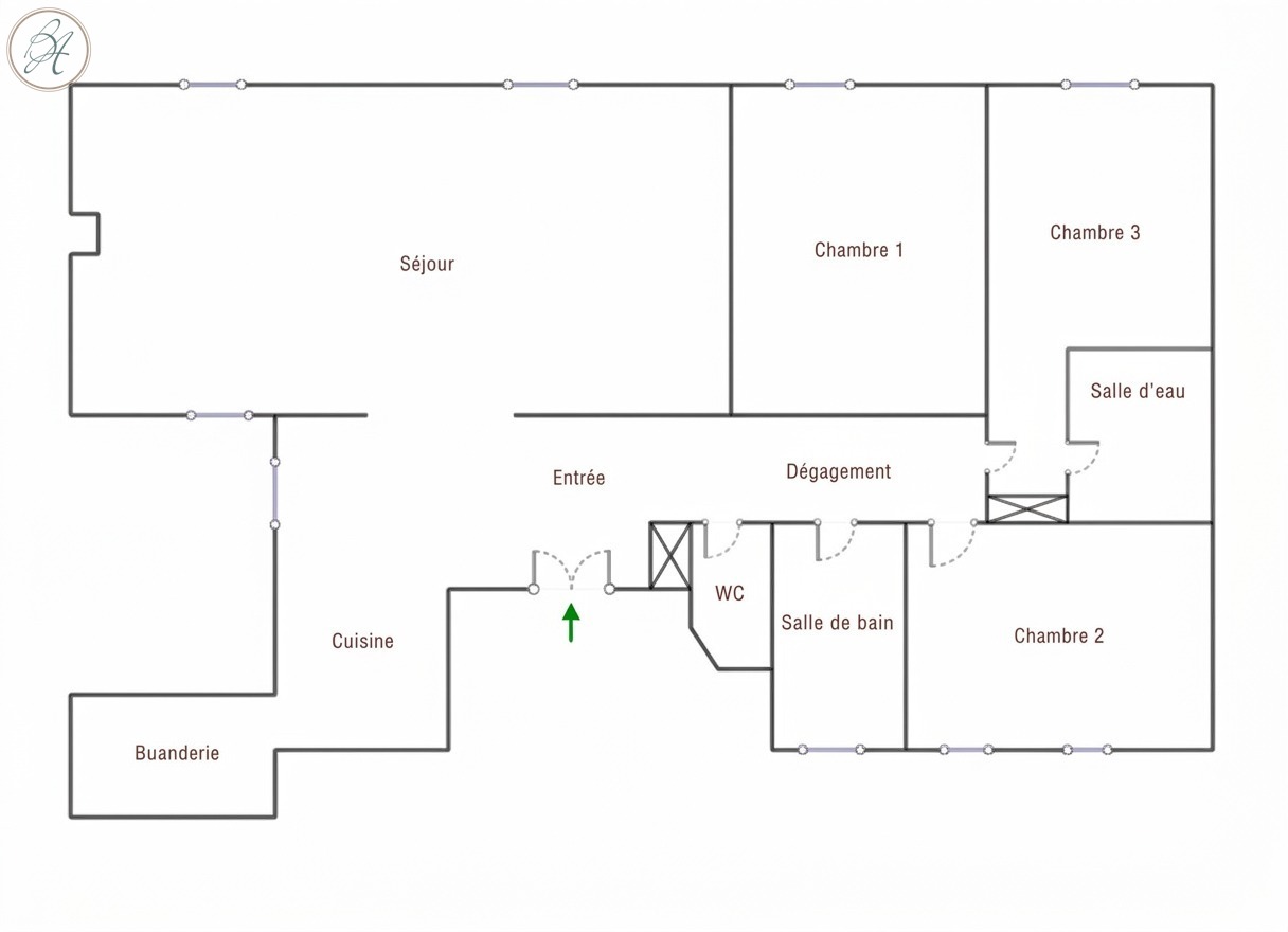 Petits balcons, deux caves et présence d’une gardienne complètent ce bien.