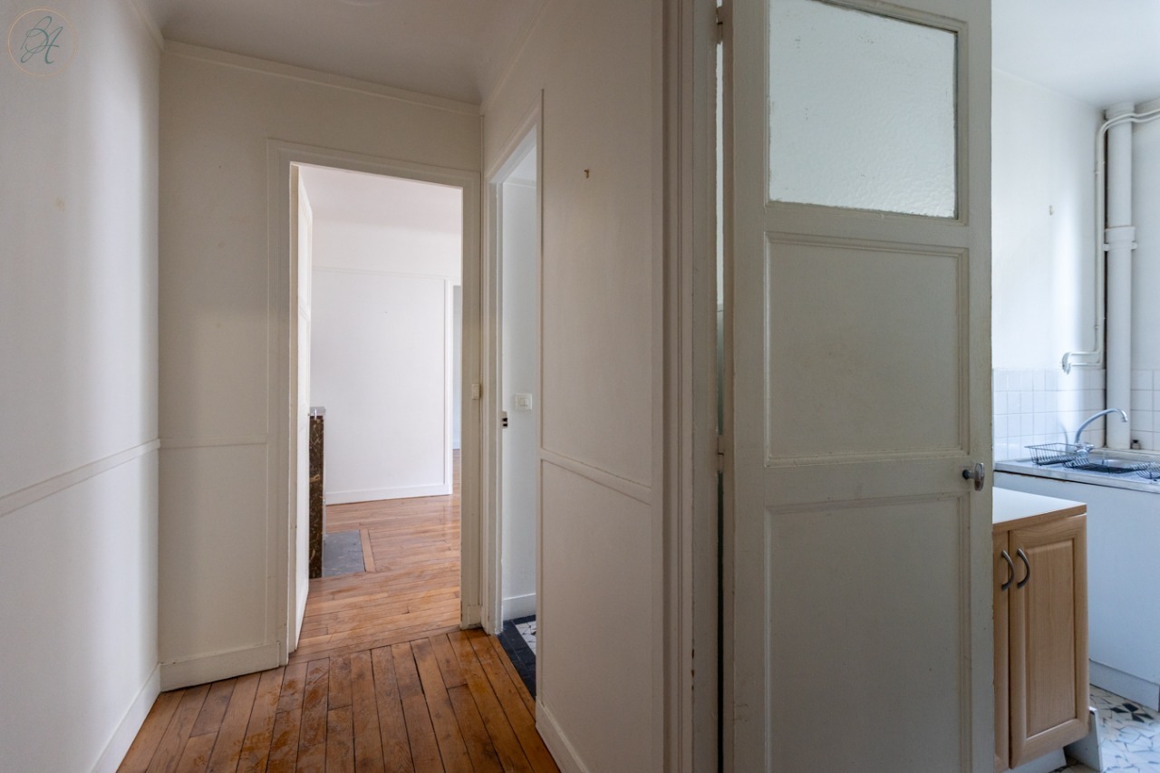 Appartement très lumineux, au plan optimisé : une entrée avec rangements possibles desservant un séjour, une chambre, une cuisine et une salle d’eau avec WC. Parquet, cheminée, charme de l’ancien. Prévoir rafraichissement et ravaux dans la cuisine et la salle d’eau.